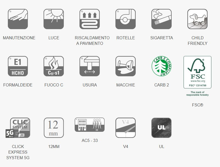 Pavimenti in laminato di alta qualità. Super resistenti a fuoco , luce , bruciatura , pressione e usura. Ideali anche per riscaldamento a pavimento. Conformi alle norme europee sull'emissione di formaldeide. Pavimento laminato facile da montare grazie all'incastro rapido CLIC EXPRESS SYSTEM , per una posa semplificata doga per doga.