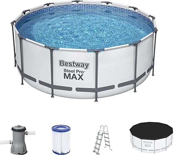 Struttura con telaio in metallo galvanizzato antiruggine Pareti in PVC-poliestere resistente, triplo strato Valvola di rapido svuotamento Dimensioni ø 366x122h cm Capacità (al 90%) 10.250 L Peso 51 kg