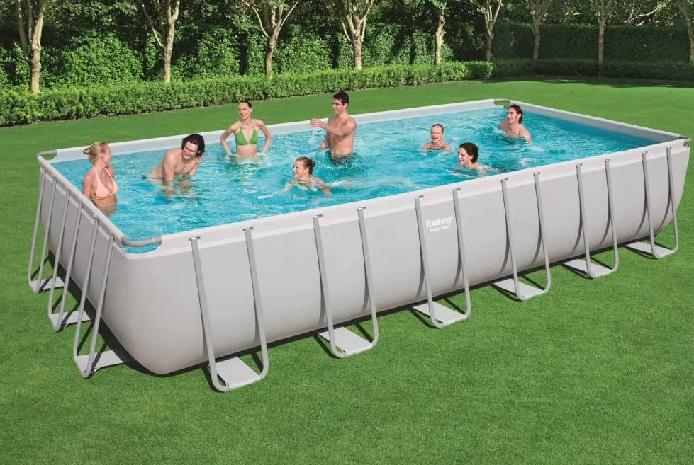 Struttura con telaio in metallo galvanizzato antiruggine Pareti in PVC-poliestere resistente, triplo strato Valvola di rapido svuotamento Dimensioni 732x366x132h cm Capacità (al 90%) 30.045 L Peso 178 kg