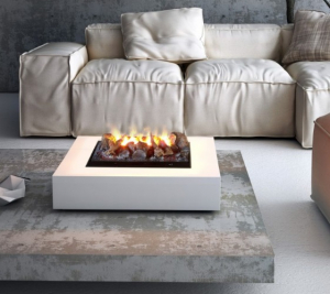 Rigoletto è un caminetto ad acqua che si può utilizzare in diverse situazioni: su grandi tavoli, per terra davanti ai divani o in camera da letto. Rivestito in acciaio verniciato, le sue forme semplici ben si adattano con qualunque stile di arredo. Al suo interno è collocato un modulo elettrico ad acqua Brace 40 legna. L’e?etto fumo e brace, abbinato al crepitio della legna, rende la magia del fuoco sicura e gestibile con il telecomando di serie.