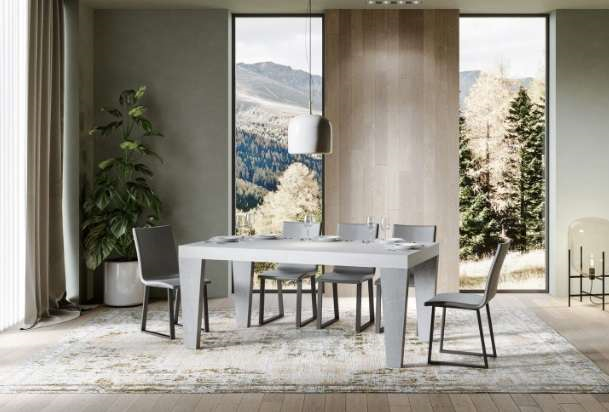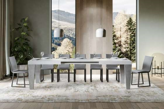 Tavolo Spimbo Mix Allungabile Piano Bianco Frassino Gambe Cemento 90×180 Allungato 440