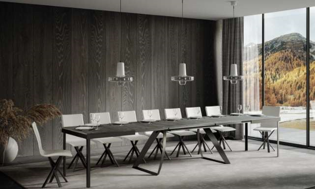 Disponibile nella versione a cinque allunghe è possibile avere il Tavolo in diverse finiture.