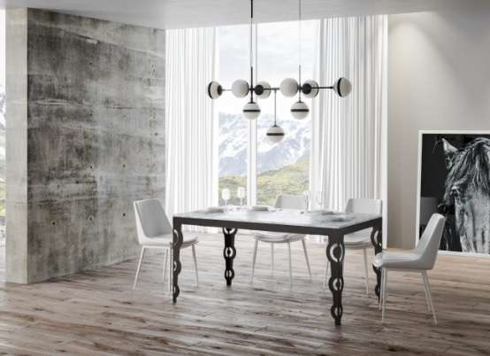 Tavolo Karamay Evolution 90×180 Allungato 284 Telaio Antracite Piano Disponibile In Diversi Colori Il Tavolo Karamay Evolution 180 Allungabile è una linea dallo stile stravagante e raffinato, grazie alle particolari decorazioni delle gambe. Le gambe e il telaio sottopiano in ferro verniciato è in grado di garantire solidità alla struttura, anche quando completamente esteso. Si adatta ad ogni esigenza di spazio, grazie al particolare sistema di allunghe che gli permette di estendersi fino a 284 cm. Le allunghe presentano la stessa finitura del piano sono alloggiate sotto al piano. Made in Italy con materiali 100% italiani