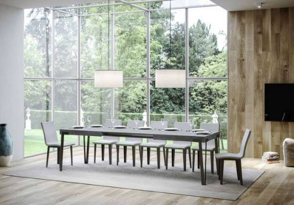Tavolo Rio 160 cm è un Tavolo da pranzo Allungabile moderno, con particolari gambe dalla linea geometrica innovativa e riconoscibile, un modello che donerà carattere alla vostra sala da pranzo. Il Tavolo Rio è dotato di un sistema a due allunghe che gli permette di estendersi progressivamente fino a 264 cm, aumentando così la sua capienza a 10 persone, permettendovi così un utilizzo sia quotidiano che per le occasioni speciali.