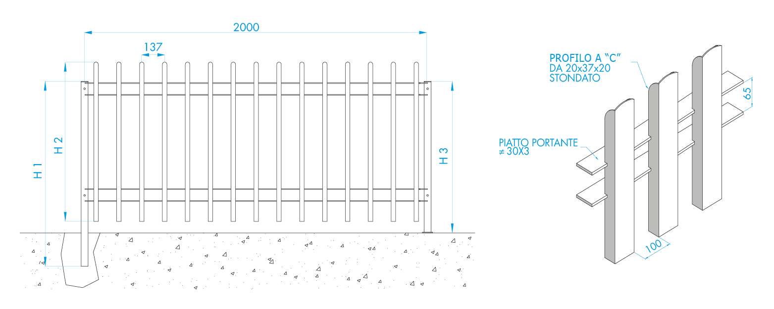 Pannello di Recinzione Modulare in Ferro a C Zincato e Verniciato - Linea Atlanta