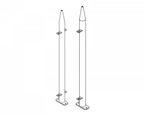 Piantana , rifinita conica , riprendono la forma dei profili verticali e sono realizzate in tubo tondo ø60 mm.