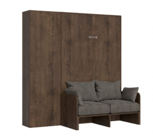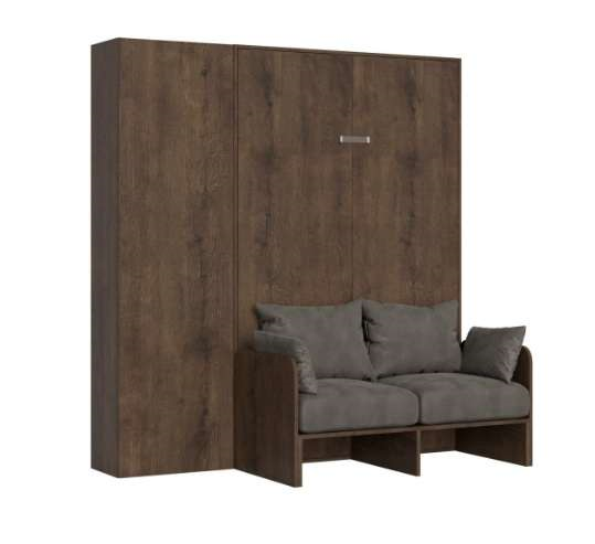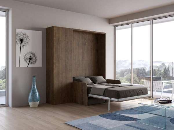 La composizione è proposta con letto a parete a scomparsa verticale Kentaro matrimoniale con divano Sofà e una capiente e spaziosa colonna appartenente alla linea Isoka.