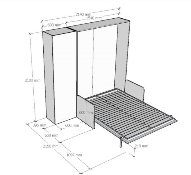 Quando aperto invece presenta le medesime caratteristiche e comodità di un normale letto, arrivando a misurare 215 cm di pronfodità.