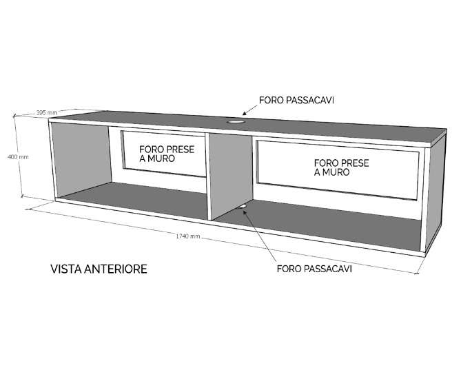 La base arriva fornito di nr. 1 divisorio centrale, necessariamente da montare in quanto conferisce al modulo stesso maggiore stabilità e compattezza.