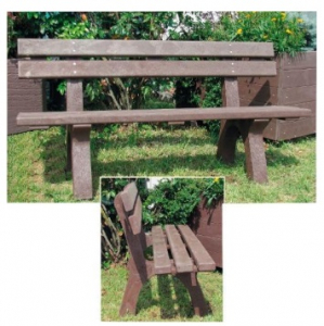 Panchina con schienale o senza. Seduta rinforzati di lunghezza 1800 mm a tre stecche. Realizzata con profili di sezioni variabili in plastica proveniente da raccolta differenziata (certificata PSV da IIP) Ferramenta generale in acciaio inox. Ancoraggio al terreno oppure al pavimento.