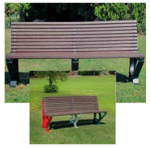 Panchina Milano con schienale Seduta rinforzata di lunghezza 1800mm Congambe in acciaio zincato e verniciato. Realizzata con profili di sezioni variabili in plastica proveniente da raccolta differenziata (certificata PSV da IIP) Ferramenta generale in acciaio inox. Ancoraggio al terreno oppure al pavimento.
