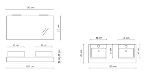 - Top sospeso scatolato in MDF rivestito e HPL H 12 x L120 x P 45 cm