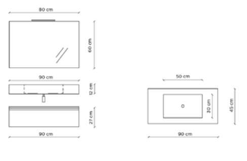 - Top - Lavabo sospeso con un lavabo integrato 90x45x12cm colore carrara.