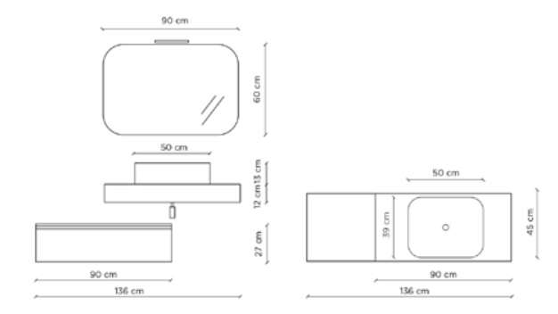 - Top in MDF rivestito in HPL 90x45x12cm,