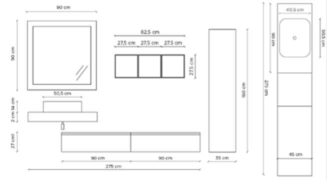 - pensile sospeso a giorno con 3 moduli quadrati 82,5 x 27,5 cm