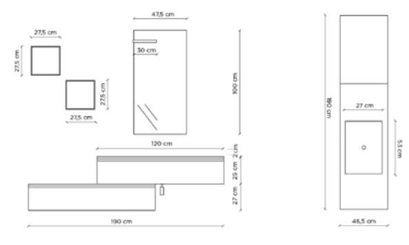 Mobile bagno completo di 6 pezzi comprensivo di tutto quello che ti occorre per arredare il tuo bagno.