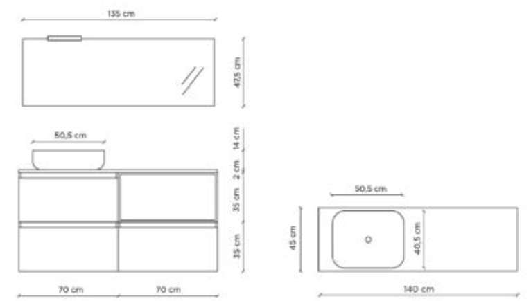 - Base sospesa in melaminico antigraffio spessore 18mm (35x71x45 cm)