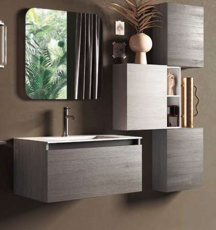 Composizione 8 Pz Arredo Bagno Modello Ibiza Colore Rovere Cenere