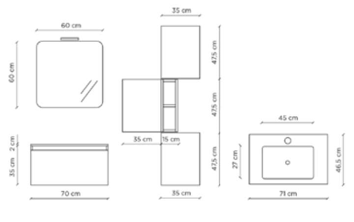 Mobile bagno completo di 8 pezzi comprensivo di tutto quello che ti occorre per arredare il tuo bagno.
