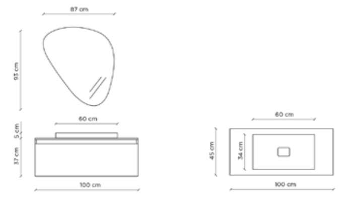 - Base sospesa in melaminico antigraffio spessore 18mm (37x100x45 cm)