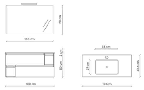 - Base sospesa in melaminico antigraffio spessore 18mm (101x52x45cm)