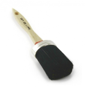 Pennello ovalino a setola nera, ideale per l’applicazione di qualsiasi tipo di smalto o vernice a solvente.