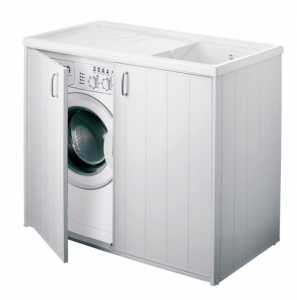 CARATTERISTICHE Ante a chiusura magnetica, Vasca in PP resistente a tutti gli acidi di uso domestico, forabile per installazione miscelatore (non incluso) kit di scarico autopulente, fornito in kit di montaggio. Lavatoio per “esterni” interamente costruito in PVC estruso, particolarmente resistente agli agenti atmosferici; ideale per giardini; terrazze, garage e cantine