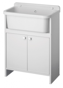 Mobile Lavanderia Con Vaschetta e Due Ante Colore Bianco 55x34x80 cm