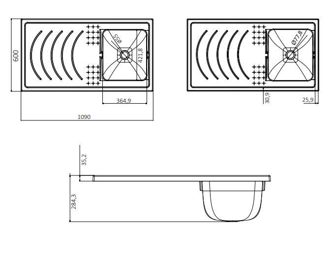 Vasca REVERSIBILE con in dotazione tappo copriforo
