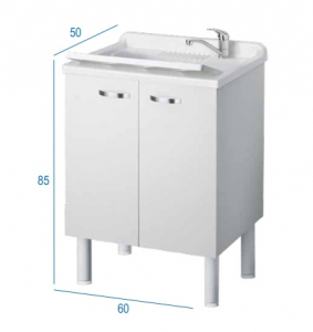 Mobile Lavanderia Due Ante Con Vaschetta e Asse di Lavaggio In Resina Colore Bianco Disponibile in Diverse Misure