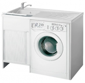 Mobile Lavanderia Con Vaschetta Reversibile Chiusura a Serrandina Colore Bianco