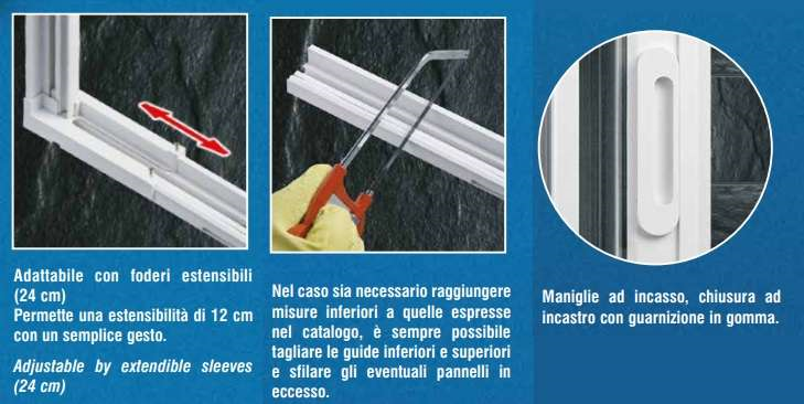 - Dimensioni riducibili, mediante il taglio delle guide di scorrimento