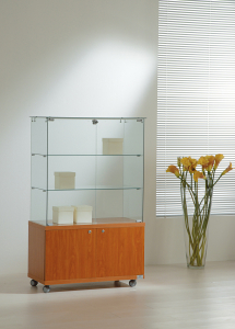 VETRINA Top Cristallo Temperato 5MM con Mobile (h 43 cm) in Kit, Base in legno colore ciliegio, grigio o wengè a scelta, vetrina senza luci, vetrina h.130 cm vetrina profondità cm 40. 2 ripiani fissi a 33 cm di distanza.