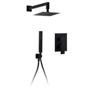 Kit Doccia Completo Quadro Nero Con Deviatore Ceramico - Soffione Disponibile In Diverse Misure