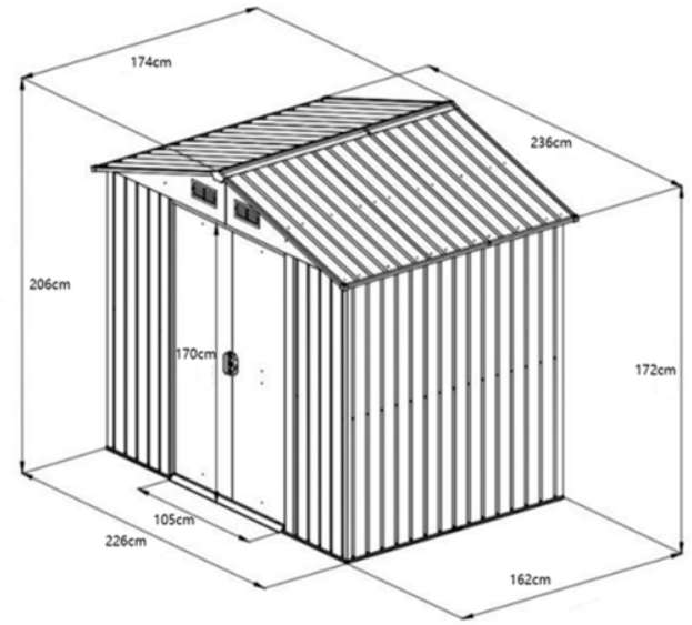 ITALFROM Casetta/Box Giardino in lamiera Casetta da giardino prefabbricata senza pavimento - misura esterna cm 174 X 236 X 201 H