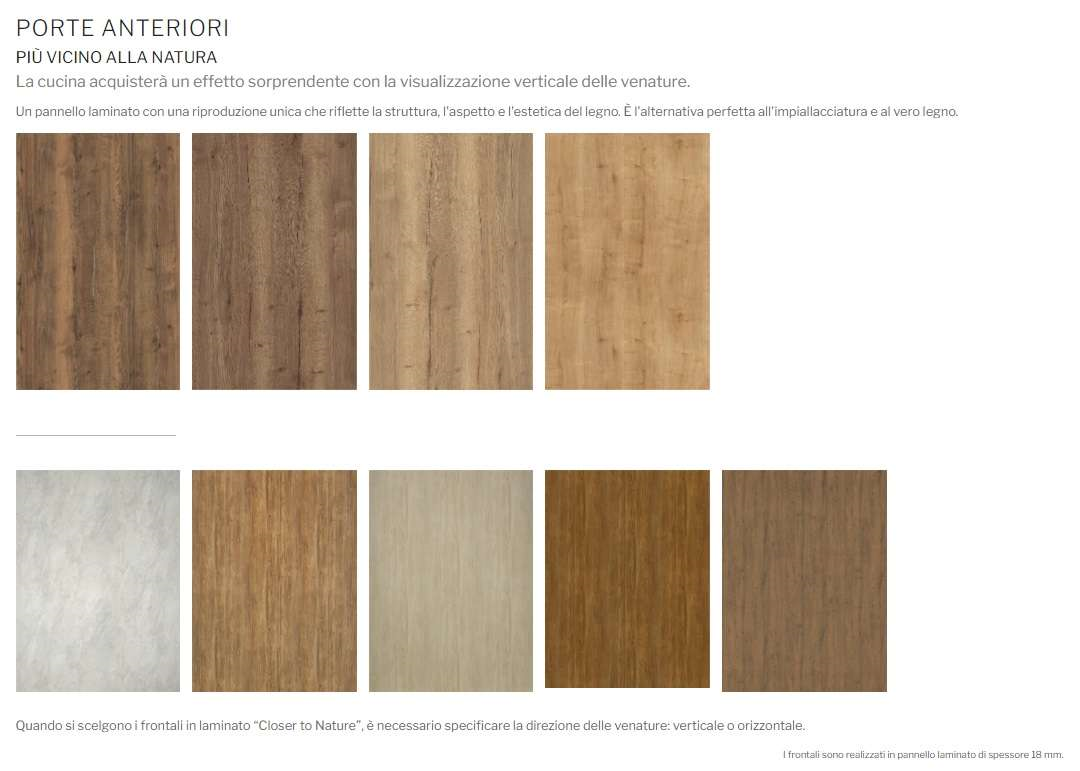 Crea tu la cucina dei tuoi sogni con la nostra vasta gamma di finiture e accessori: Frontali fresati in varie versioni di cornice, disponibili in colori tenui di vernici semiopache che daranno alla tua cucina un aspetto elegante, creando un'atmosfera accogliente all'interno. Maniglie disponibili in tante varianti che daranno il tocco finale.