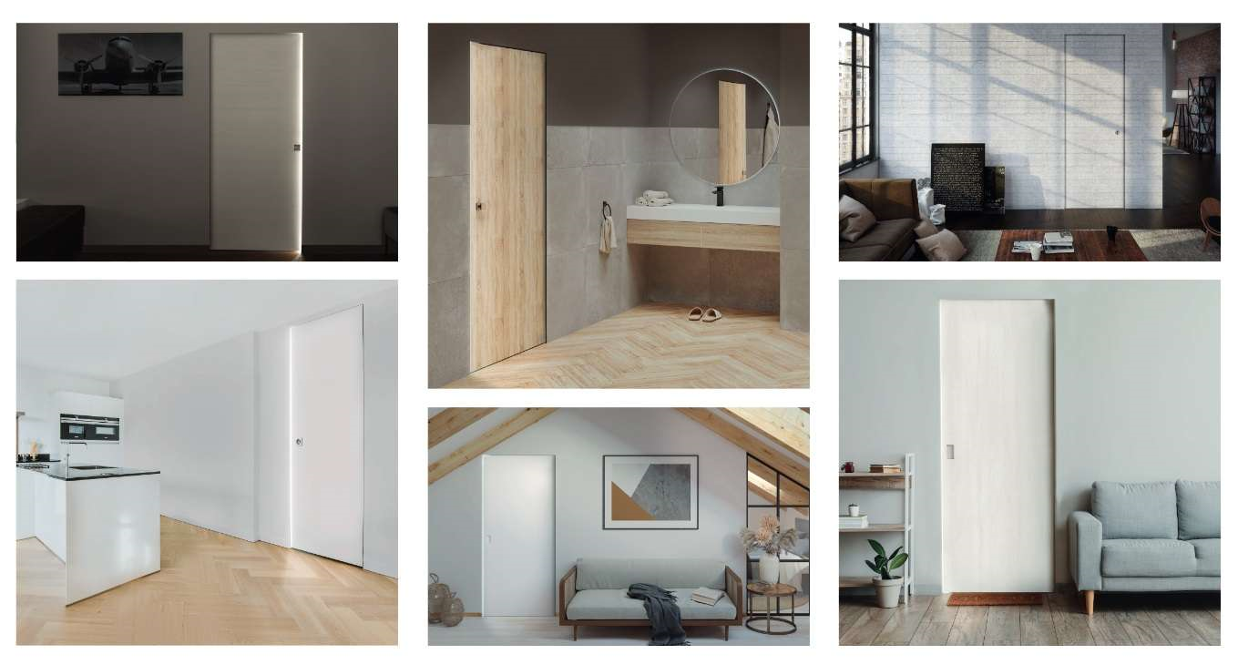 Grazie al kit di montaggio i passaggi di assemblaggio e installazione della porta scorrevole sono davvero rapidi ed intuitivi. Una soluzione adatta sia agli amanti del fai-da-te che a un pubblico specializzato! MINIMO INGOMBRO, MASSIMO RISULTATO Grazie ad un sistema che ottimizza lo stoccaggio, si possono realizzare fino a 6 misure standard con un solo prodotto.