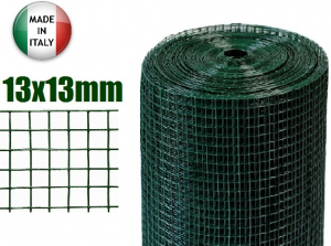25mt-Rotolo Rete Metallica-Mini Zincata Plastificata - Maglia:mm13X13 -Filo:mm1,3 -H 100 cm