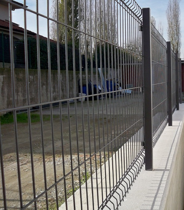 CONSEGNA 24/48 ORE LAVORATIVE -Recinzione modulare in pannelli di filo zincato elettrosaldato e plastificato con poliestere colore antracite micaceo, diametro esterno del filo 5 mm. Maglia 50x200 H mm (interno) e nervature orizzontali di rinforzo. Larghezza del pannello disponibile 2000 mm. PRODOTTO MADE IN ITALY Sempre attenta all’evoluzione dei mercati La Italfrom srl ha voluto proporre una recinzione rigida, che è poi una cancellata a tutti gli effetti, studiando un colore nero antracite che è d’obbligo in città, ma dobbiamo dire che si coniuga perfettamente anche per le classiche delimitazioni perimetrali di centri commerciali, parchi, zone residenziali e sportive. E così adesso gli studi di Architettura richiedono espressamente questo innovativo sistema di recinzione con effetto “ferro antichizzato” che si armonizza perfettamente al paesaggio, per di più ad un costo assolutamente conveniente. Questo Pannello è consigliato con le seguenti altezze di pali: Per pali postati nel terreno o cemento: Altezza pali consigliato: H 130 cm Per pali posati mediante supporti al suolo: Altezza pali consigliato: H 110 cm Dettagli Finitura prodotto: PFZ (Filo zincato + Fosfatazione ai sali di zinco + Plastificazione con poliestere): Il filo utilizzato per produrre questa rete è zincato a caldo in continuo in bagno di zinco per garantire la massima resistenza e durabilità nel tempo al prodotto. Successivamente, dopo aver assemblato il pannello, viene applicato il trattamento di Plastificazione PFZ che prevede 7 fasi di lavorazione che assicurano la migliore qualità del prodotto. La prima fase prevede il degrassaggio (1) per eliminare ogni residuo superficiale di olio, grasso e polvere. Successivamente un’ulteriore lavaggio (2) elimina altre eventuali impurità e residui del degrassaggio. A questo punto inizia il ciclo di fosfatazione : lavaggio con acqua demineralizzata (3) ed applicazione di fosfati di zinco (4). Il prodotto viene poi asciugato (5) in forno a 120° in preparazione alla successiva fase di plastificazione (6) con resine di poliestere puro al 100%. Attraverso la polimerizzazione (7) lo strato di poliestere viene fissato al supporto.