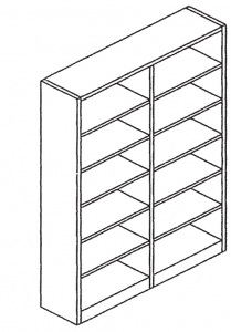 Gli armadi larghi 100 e 120 cm, altezza cm 200, hanno vano unico con 4 ripiani spostabili su cremagliera passo 25mm; gli armadi di larghezza maggiore, hanno due vani divisi da tramezza, con 4+4 ripiani spostabili.