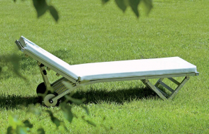 Lettino in acciaio inox, perfetto per l’utilizzo esterno, dal design essenziale, innovativo e minimalista; dotato di due ruote posteriori per facilitarne la movimentazione e di schienale regolabile per il massimo comfort. IL CUSCINO NON E' COMPRESO. ACQUISTABILE A PARTE