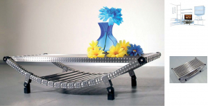 Questo tavolino dal design minimal si abbina perfettamente allo stile dei più attuali schermi tv grazie al kit supporto monitor che permette di posizionare lo schermo a diverse altezze. Il piano a grata sostenuto da due montanti ricurvi crea un pratico vano porta riviste, CD etc.n