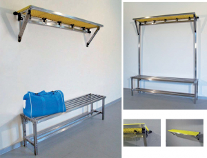 The cloak room shelf forms part of the cloak room series of products. It is fixed to the wall and includes handy coat hooks and hat rack