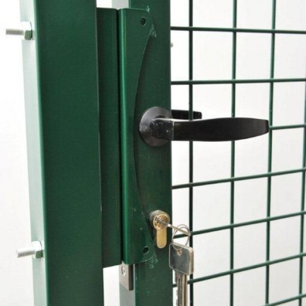 cancelletto zincato plastificato verde cm 100x125h - Con rete saldata 50X50X4 mm - Telaio 35/40 mm- completo di piantoni laterali quadri 60x60mm - e provvisto di maniglia e serratura con chiave