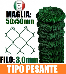 Rete metallica Romboidale made in italy -Maglia: mm50x50 -filo 2,2/3,0 mm(GARANTITO 100%)- a semplice torsione, conosciuta sul mercato anche con il nome di "Maglia sciolta" "Rete a rombi" "Rete griglia" data la sua realizzazione ad intreccio e non elettrosaldata. Caratteristica primaria è l’elevata flessibilità in fase di posa in opera, infatti l’impiego è particolarmente adatto per recintare aree caratterizzate da superfici irregolari tipo terreni agricoli con dislivelli.Molto usata anche in ambito sportivo , per recintare campi da calcio , tennis ecc