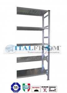 MODULO CONTINUATIVO scaffalatura industriale zincata componibile Lunghezza 120 cm , H 300 cm , prof. 30 cm , con 5 ripiani