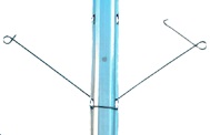 INOX: 302 / distanziatore mobile di fili doppi da incastrare al palo in metallo. servono per sostenere i fili doppi per il contenimento della vegetazione vengono aperti durante la potatura e richiusi quando i germogli hanno raggiunto una certa lunghezza. I fili restano incardinati nel distanziatore, solo la molla viene aperta e chiusa. In questo modo la maggior parte dei germogli si sviluppa dentro i due fili, i vantaggi sono un minor numero di germogli spezzati, un maggior intervallo di tempo per eseguire i lavori ed una più rapida