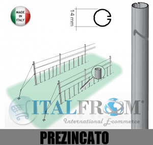 SPESS: 0,5 mm - Il tutore da 14mm viene impiegato per vigneti impianti a spalliera in sostituzione ai comuni tondini in ferro. -Prodotto made in Italy - PER ALTEZZE PERSONALIZZATE RICHIEDI UN PREVENTIVO . Il tutore oltre che essere fondamentale per il sostegno della vite ha anche una fondamentale importanza per la resistenza agli urti delle macchine che lavorano nel sottofila. Il trasporto e la posa in opera sono rese semplici e veloci. Fornibile a richiesta in vari spessori. I Pali e i tutori in Metallo hanno ormai preso piede nella viticoltura moderna quale validi sostituti ai più tradizionali pali in Legno e pali in cemento. La facile manualità dei Pali e tutori in Metallo permette anche negli impianti più impervi, la realizzazione di un Vigneto che rispecchia i più alti standard qualitativi. I sostegni metallici rappresentano una soluzione adeguata, perchè associano ad un limitato ingombro un'ottima resistenza. TUTORI PREZINCATO I tutori prezincati si caratterizzano per una buona durata nel tempo e per la loro economicità nei confronti degli altri profilati.