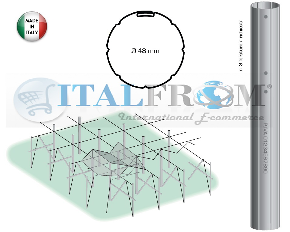 € 688,50 + iva - SPESS: 1,00 mm -PESO: Kg4,05- il Palo Tondo "grande" da 48mm , viene usato per impianti a tendone o per impianti a copertura per vigneti e frutteti -Viene fornito su richiesta con o senza asole in base allle esigenze del cliente. Prodotto made in Italy - PER ALTEZZE PERSONALIZZATE RICHIEDI UN PREVENTIVO . n.b.Sul palo si puo incidere il nome, cognome dell' acquirente o la P.IVA della socetà. Servizio offerto su richiesta per ordini superiori a 5000 pz I nostri prodotti sono realizzati con materie prime di qualità e di origine italiana. Il Palo in Metallo ha ormai preso piede nella viticoltura moderna quale valido sostituto ai più tradizionali pali in Legno e pali in cemento. La facile manualità del Palo in Metallo permette anche negli impianti più impervi, la realizzazione di un Vigneto che rispecchia i più alti standard qualitativi. I sostegni metallici rappresentano una soluzione adeguata, perchè associano ad un limitato ingombro un'ottima resistenza. PALO PREZINCATO Il palo prezincato si caratterizzano per una buona durata nel tempo e per la loro economicità nei confronti degli altri profilati.