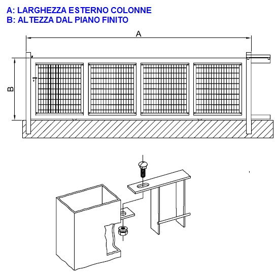 Pilastri di sostegno: 100x100x3 mm